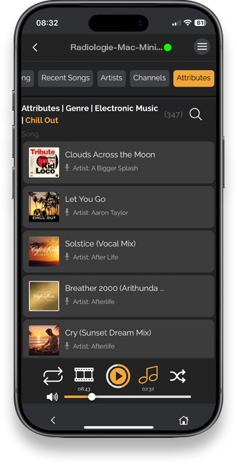 Playlists, Genres und Inhalte einfach anwählen